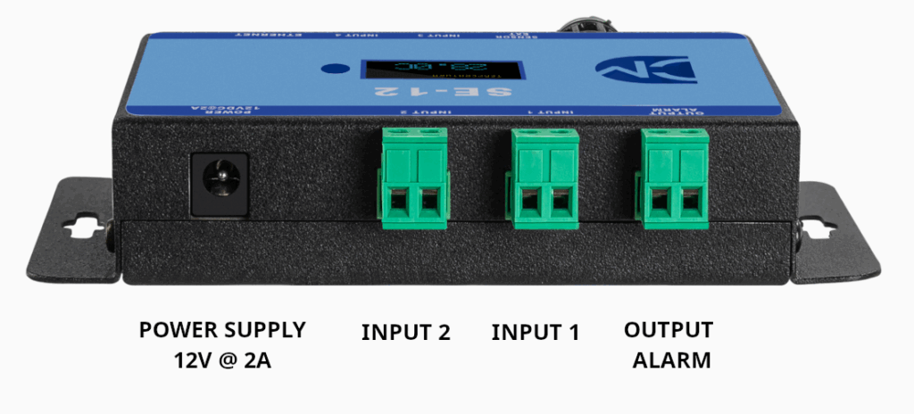O SE-12 é um monitor ambiental com sensores internos de temperatura e umidade para monitoramento do ambiente, além de suportar sondas de temperatura externas (vendidas separadamente) para monitoramento adicional, como dentro de racks. O dispositivo possui conexão Ethernet, 4 entradas digitais configuráveis e saída para acionamento de cargas externas e alarmes. O SE-12 é ideal para aplicações que requerem monitoramento remoto e centralizado de data centers, salas elétricas, câmaras frias.